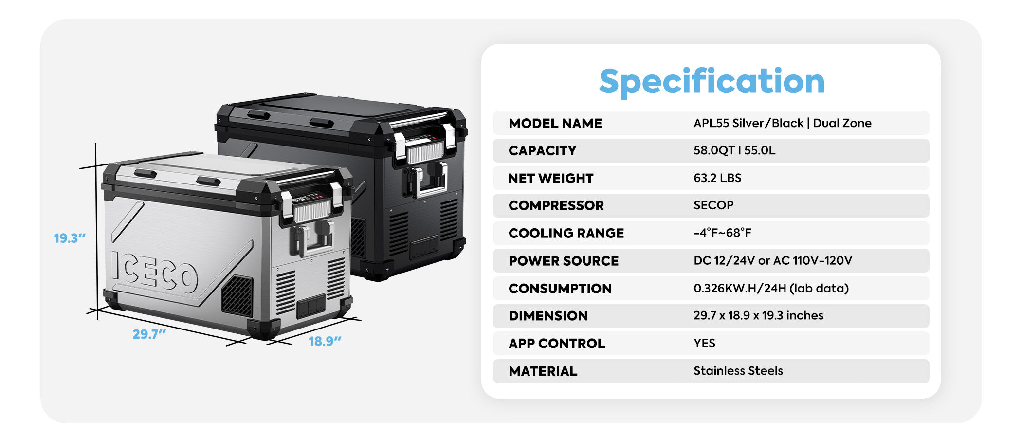 ICECO | 58QT APL55 Dual Zone 12 Volt Fridge refrigerator